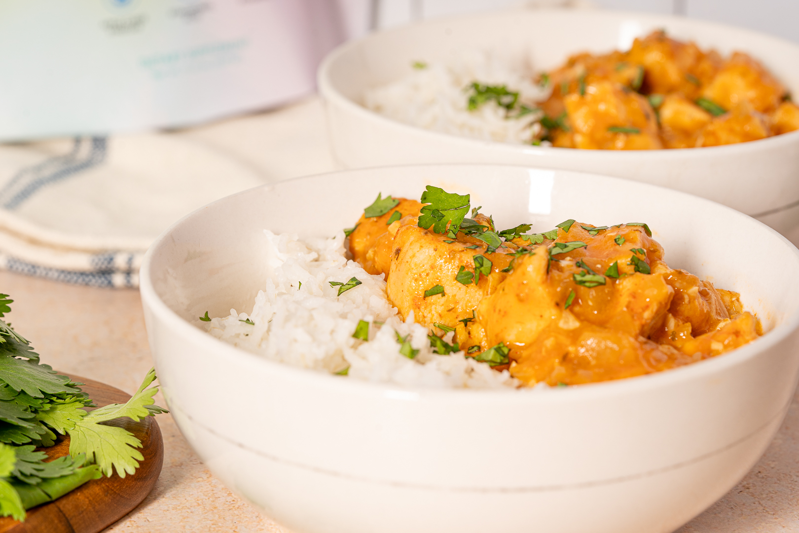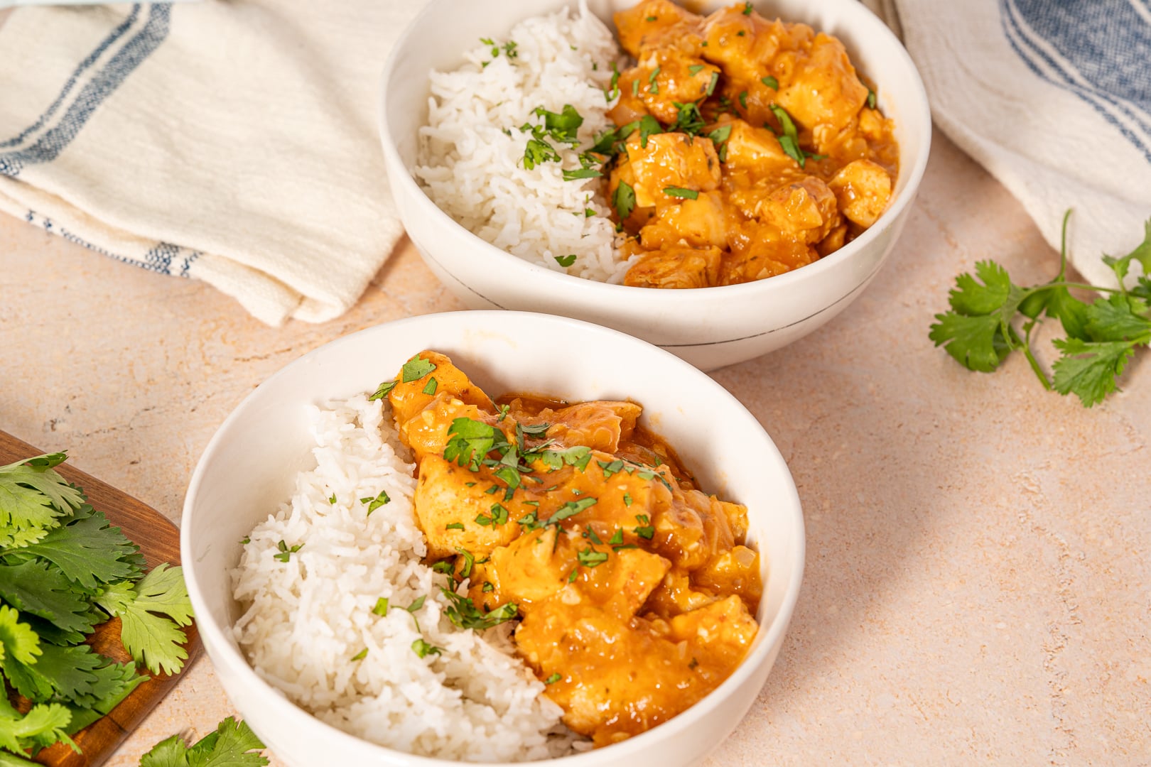 - Bowl ingredients: fresh cilantro, cooked jasmine rice or basmati